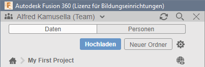 Auch innerhalb von Autodesk Fusion findet jegliche Konstruktionsarbeit jeweils im Rahmen eines Projektes statt: