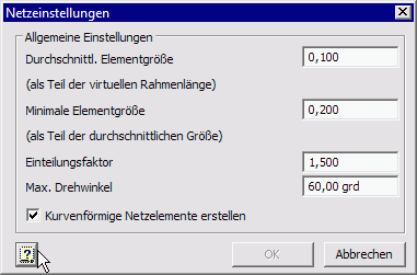 • Wir werden vorerst die Standard-Einstellung nutzen und später die Netzfeinheit im Rahmen der zumutbaren Wartezeiten erhöhen.