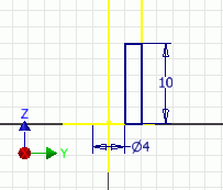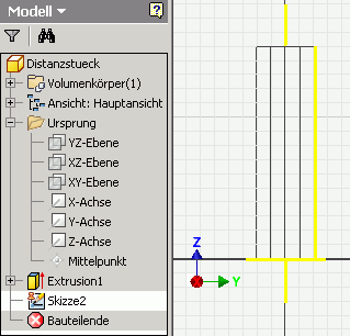 - Nur bei Wahl der YZ-Ebene kann man nachträglich die erforderlichen Modellkanten als Geometrie auf die Skizze projizieren.