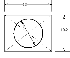 - Wir beginnen das Blech mit einer normalen 2D-Skizze auf der X-Z-Ebene. Als Grundform dient ein Rechteck mit den Maßen 13x10,2 mm und einem mittig angeordneten Kreis mit Durchmesser 8 mm: