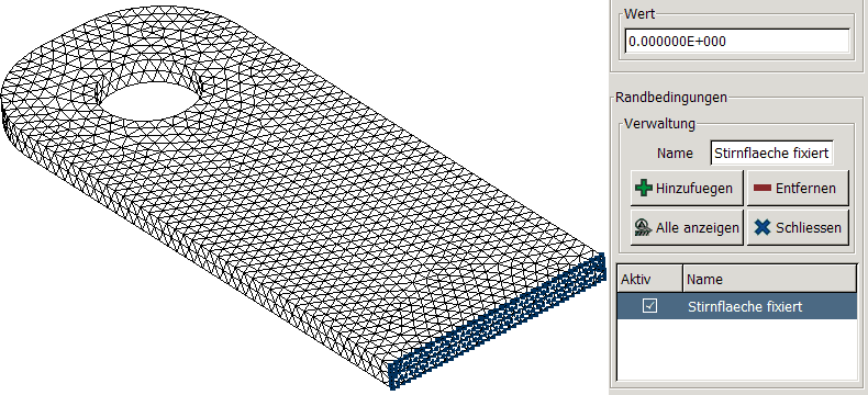- Um eine Spielpassung im Loch nachzubilden, erfolgt ein Tausch von "Last" und "Einspannung" im Vergleich zum "Verschweißen".