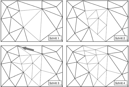 • Beim Aufspannen des Rechtecks werden dann schrittweise die bereits umfassten Tetraeder ausgeblendet.