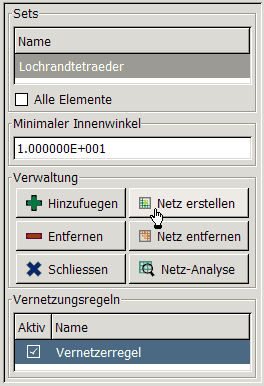 Für die Anpassung der nicht verfeinerten Tetraeder muss man einen minimalen Element-Innenwinkel angeben, um einer zu starken Verzerrung vorzubeugen. Im Handbuch wird dafür ein Winkel zwischen 3-10° als realistisch angesehen: