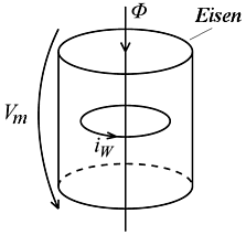 - Die Wirbelströme bewirken über die ohmschen Verluste entlang ihrer Bahn eine Erwärmung des Eisenmaterials. Insbesondere beim Einschaltvorgang bilden sie eine wesentliche Komponente der Eisenverluste.