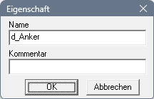 Hier sollte der jeweils im Simulationsmodell für die Ausgangslösung eingestellte Wert unter Berücksichtigung der für den Parameter verwendeten physikalischen Einheit verwendet werden (im Beispiel: d_anker in [mm]).