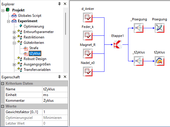 - Die Verknüpfung des Gütekriteriums mit der Ausgangsgröße erfolgt wie bei den Restriktionen.